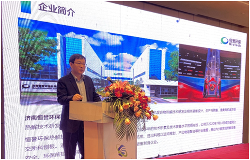 作為國家科技進(jìn)步獎獲得者、行業(yè)國家標(biāo)準(zhǔn)第一起草單位,濟(jì)南恒譽(yù)環(huán)??萍脊煞萦邢薰緮y有機(jī)危廢熱解資源化利用解決方案亮相論壇,公司副總經(jīng)理楊景智作了題為《有機(jī)危廢熱解處置技術(shù)、裝備及市場應(yīng)用案例》的專題報告。