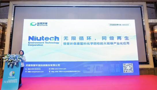 恒譽(yù)環(huán)保以“《無(wú)限循環(huán),同級(jí)再生——恒譽(yù)環(huán)保廢塑料化學(xué)回收的大規(guī)模產(chǎn)業(yè)化應(yīng)用》”為本次大會(huì)帶來(lái)主題演講,當(dāng)前我國(guó)每年產(chǎn)生6000萬(wàn)噸廢舊塑料,不適用物理回收的低值廢塑料占比46%、回收率不足10%,大多采用焚燒填埋處理,如果其中50%采用化學(xué)循環(huán)技術(shù),相當(dāng)于低成本開(kāi)發(fā)了一個(gè)6000萬(wàn)噸的城市油田。針對(duì)行業(yè)的痛點(diǎn)問(wèn)題,恒譽(yù)環(huán)保通過(guò)多年的技術(shù)積累與項(xiàng)目實(shí)踐,自主研發(fā)“工業(yè)連續(xù)化智能廢塑料熱解技術(shù)及成套生產(chǎn)線”,解決了大型熱解生產(chǎn)線應(yīng)用過(guò)程中出現(xiàn)的“裂解系統(tǒng)結(jié)焦、進(jìn)出料難以動(dòng)態(tài)密封、產(chǎn)出物聚合”等多項(xiàng)世界性難題,能夠?qū)鹘y(tǒng)物理技術(shù)難以處理的混合廢塑料、海洋廢塑料、醫(yī)療廢塑料轉(zhuǎn)化為品質(zhì)穩(wěn)定的再生能源產(chǎn)品,后續(xù)通過(guò)深加工可作為生產(chǎn)新塑料的化工原料,真正實(shí)現(xiàn)了同級(jí)化、高值化利用。既減少了對(duì)化石能源的依賴,又降低了碳排放和環(huán)境污染,為全球廢塑料污染治理提供了可驗(yàn)證、可復(fù)制、可推廣的成熟方案,憑借突出的創(chuàng)新性、先進(jìn)性、示范性,該套技術(shù)裝備榮獲中國(guó)科技領(lǐng)域最高獎(jiǎng)項(xiàng)“國(guó)家科學(xué)技術(shù)進(jìn)步獎(jiǎng)”