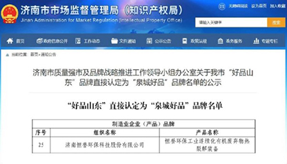 2024年7月公司主導(dǎo)產(chǎn)品“工業(yè)連續(xù)化有機(jī)廢棄物熱裂解裝備”入選濟(jì)南市市場(chǎng)監(jiān)督管理局認(rèn)定的第一批“泉城好品”;