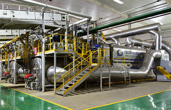 生產(chǎn)所需熱能完全由油泥殘渣熱解產(chǎn)生的不凝可燃?xì)饣蛉剂嫌吞峁?,且采用余熱循環(huán)供熱方式,大大節(jié)省了能源消耗,降低了生產(chǎn)線運(yùn)行成本